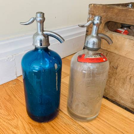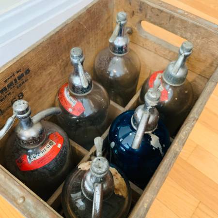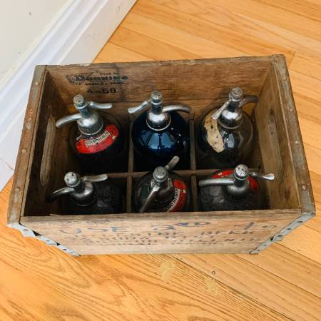 Seltzer Water Antique Vintage Bottles w/Wooden Crate