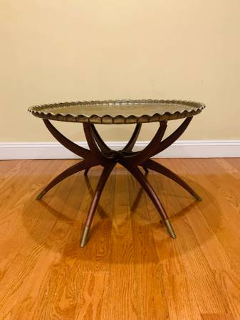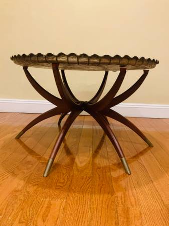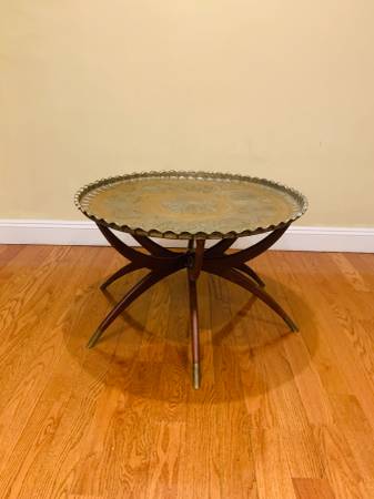 Vintage Mid Century Moroccan Style Oval Brass Spider Legs Folding...