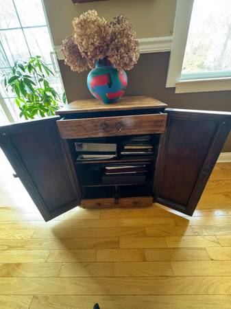 Two-panel doors with spacious and well-proportioned interior, top drawer, and two bottom drawers.