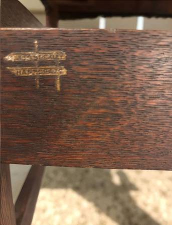 This exceptional antique armchair exemplifies the timeless craftsmanship of the American Arts & Crafts movement from the early 20th century. Featuring the characteristic sturdy oak construction and clean, geometric lines that define Stickley's iconic style, this piece showcases the quarter-sawn oak's beautiful grain patterns that have aged to a rich, warm patina.