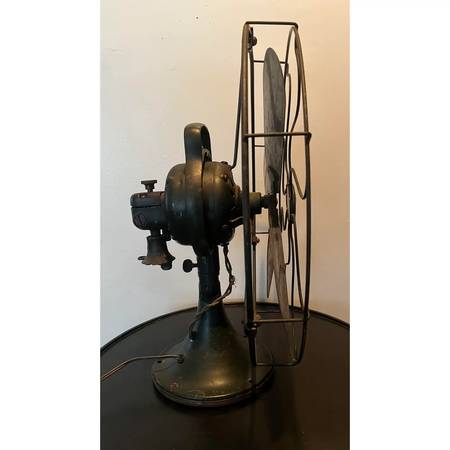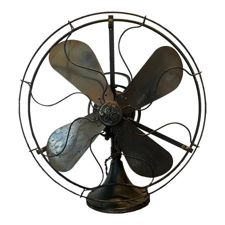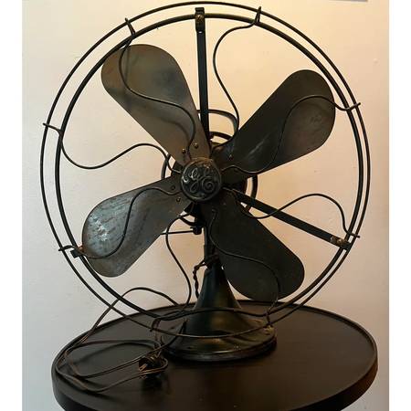 Great GE fan early 20th century. This is a big boy, 19" tall x 17" wide. Heavy duty industrial, all 3 speeds work. Not sure if it is supposed to oscilate, see pics for slight damage in back that perhaps needs a screw for oscillation? I am no expert. Great accent piece for collectors.