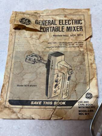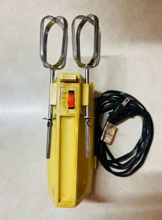 My mother’s mixer still works great. Model# D1M24. Harvest gold color. Portable & compact. Cash and carry.