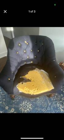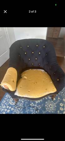 Free Brooks brothers club chairs. Need to be reupholstered. Amazing brooks brothers buttons on them. Would be a very cool project.
