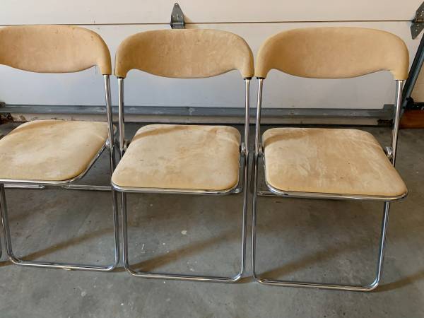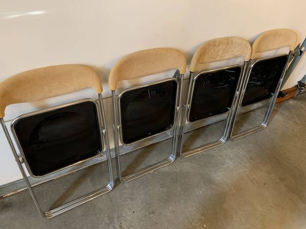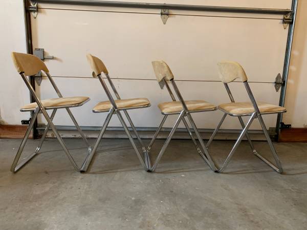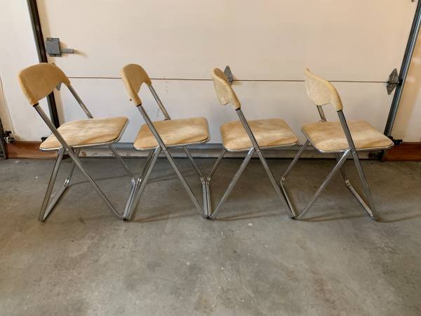 Mid Century MODERN Vintage Folding ITALIAN Chairs, 1970's, Set of 4 Needs TLC Dimensions: 18"W x 19"D x 30"/back height