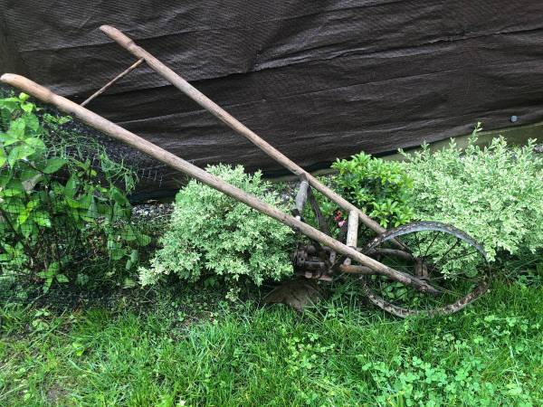 Handmade plow used before advent of modern equipment - unique historical conversation piece for your garden
