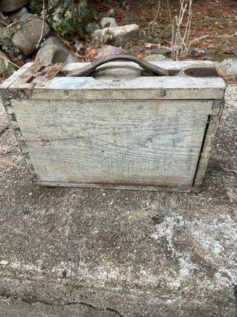 WW1 USGI US Army Doughboy Browning M1917 30 Cal WOOD Ammo Box - Canvas Strap. Original item period correct with ammo stencils on bottom. Very good condition for its age. This is a good one with brass fittings and Dove tail complete