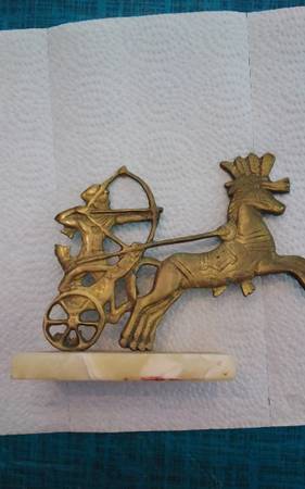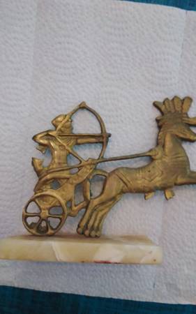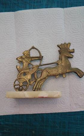 Vintage Egyptian brass Chariot statue with horse on marble base - $40 (Putnam Valley new york)