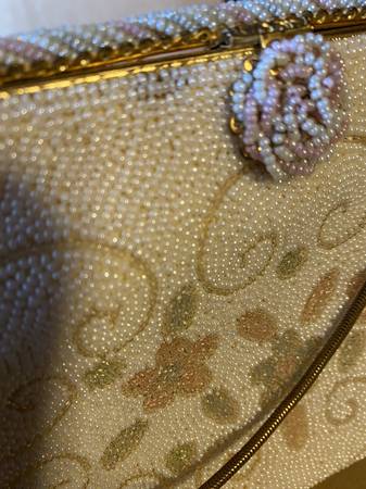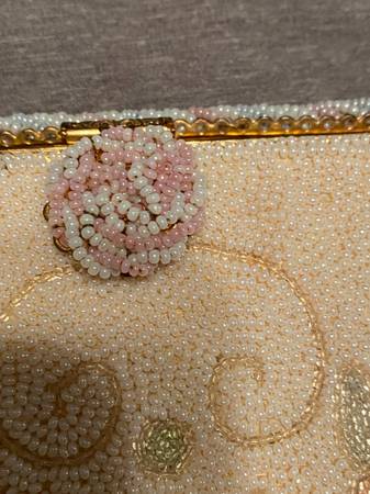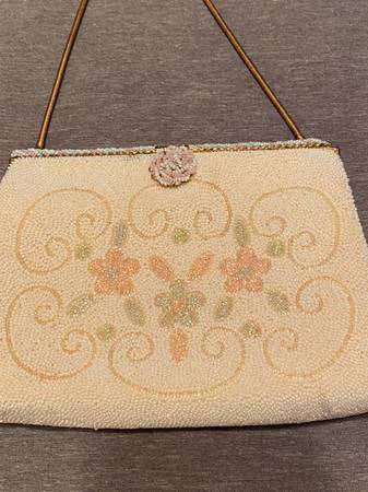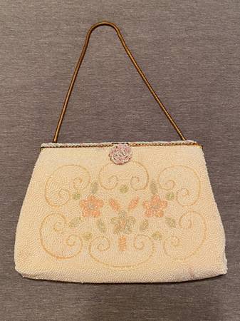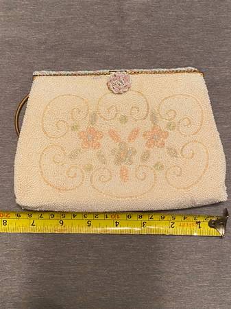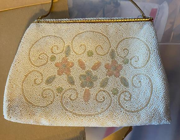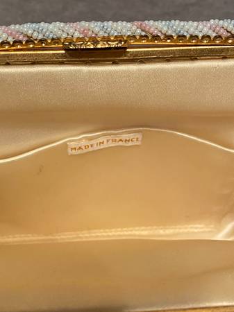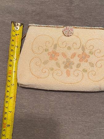 Vintage 1940’s Beaded Purse Made In France Small Interior Slit Pocket 7.5” wide x 5” high x 1.5” deep. Beautifully beaded. From my 95 year old aunt’s handbag collection. This has been in storage and...