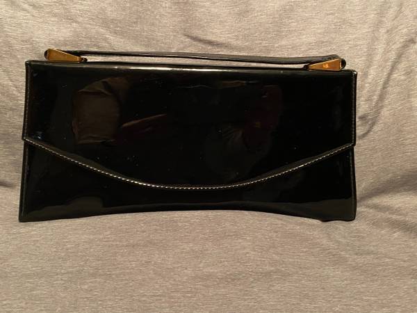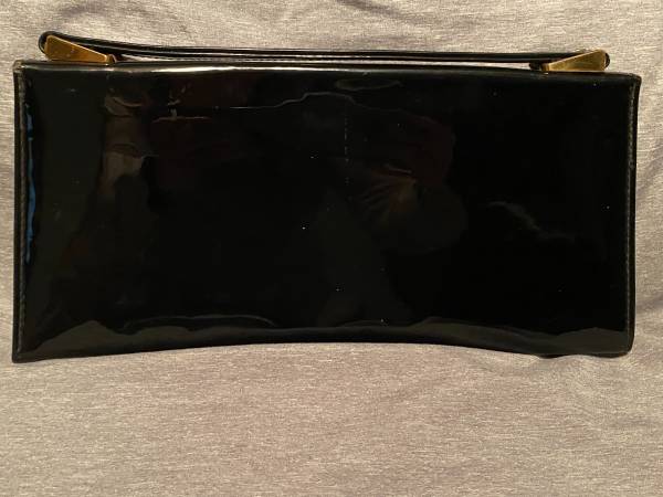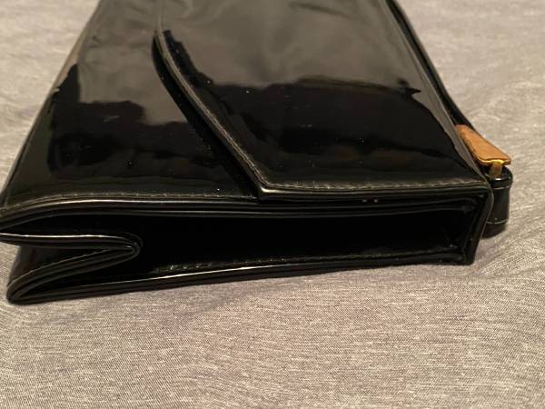 Vintage Black Patent Leather Handbag Interior zipper compartment and coin purse. 11” wide x 5.5” high x 1” deep From my 95 year old aunt’s handbag collection. This has been in storage and may not be...