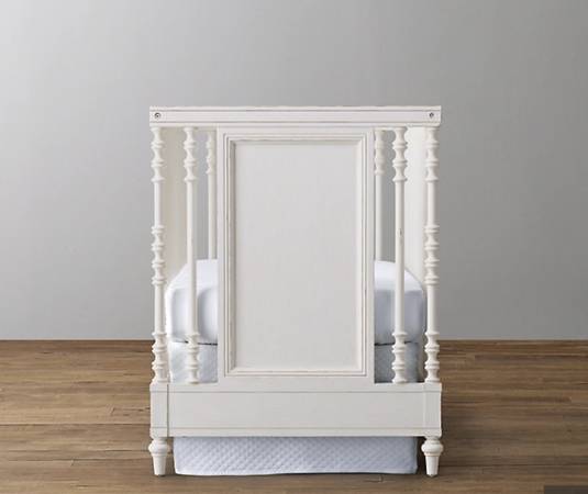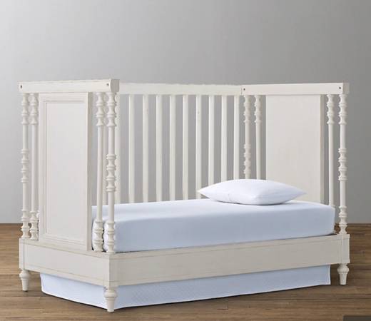 Purchased about 7-8 years ago. Can be converted to toddler bed but we didn’t buy the conversion kit. RH still has it for sale if you’re interested in this.
