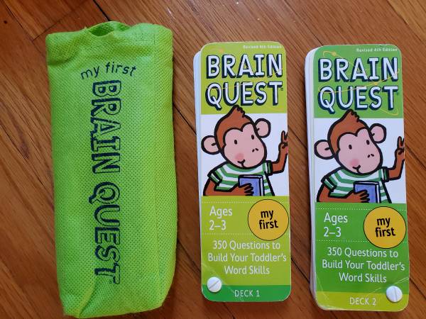 Stimulate your toddlers mind with this Brain Quest. 2 decks with both sides filled with plenty of pictures for plenty of learning.