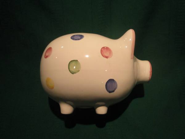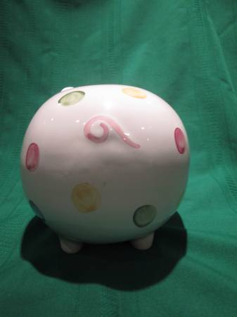 Large Ceramic Polka Dot Pig - Piggy / Coin Bank – used for display