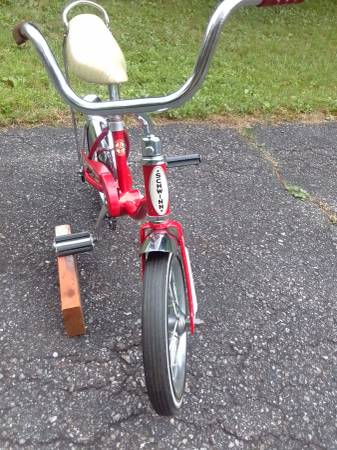 Beautiful bright red. This is a solidly built toddler's first bike from the 1960s, but it looks almost brand new! This is an early model release; an American made Schwinn; not a foreign-made knock-off. As a bonus, this model is a collectable Schwinn antique!