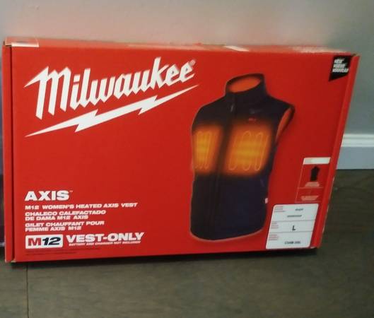 Brand new ladies size large M12 12 volt Lithium ion cordless heated vest. Vest by itself sells for $150. Only $100. Charger included. Battery not included AVAILABLE IF POSTING IS HERE!