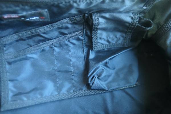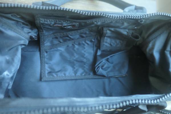 Tan or bone white color depending on lighting. Thick Cordura nylon material with interior zipper pocket for valuables. Measures: ~ 15" l x 6.5" h x 6" w. Very good condition.