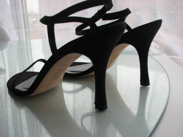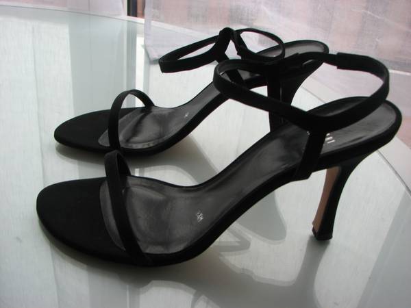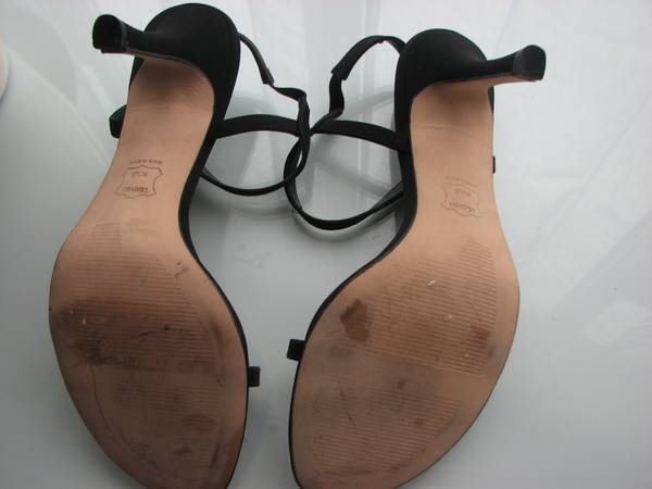 Only tried on in my apt so soles show minimal discoloration (wasn't a perfect size.) Suede straps, leather soles/insole. 3 inch heels. Made in Spain. Box but no dust cloth.