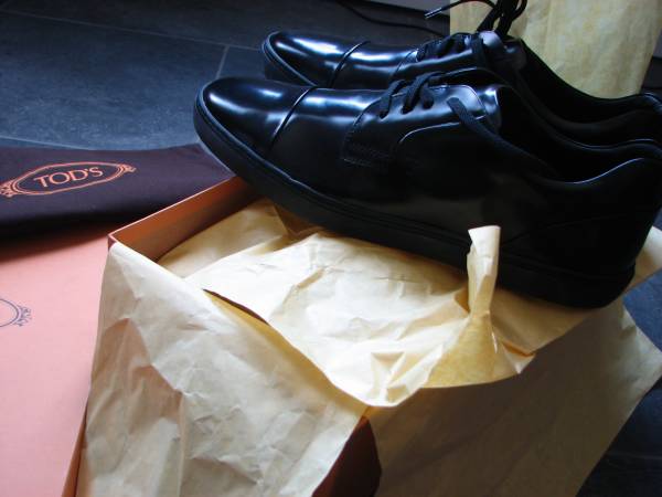 Derby Puntina Liscia Sport Cassetta in Nero/Black. Bought these but wound up never wearing them. Somewhat shiny thick soft leather so one can get away with wearing them in a suit for a formal affair or with jeans. Shoe is a bit roomy as I normally wear a 12M(D) and can easily fit into them with some room.