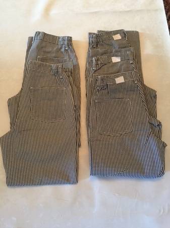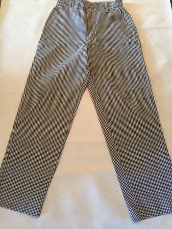 5 pairs of kitchen chef pants. Size 30 (small-med). 3 pairs are brand new (never used or washed). 2 pairs used, lightly faded (both in excellent condition). Partial elastic band on rear side of...