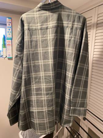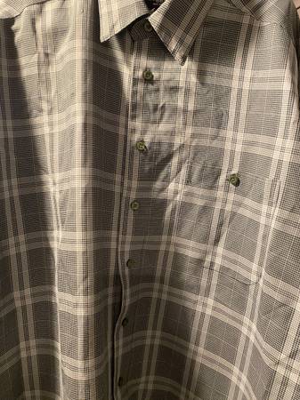 Haggar 2XLT Luxury Microfiber Long Sleeve Button Down Olive Green Plaid Like New