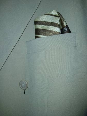 Men's double breasted ten suit with multiple pocket handkerchief jacket is R50 pants. Are 44 waist. Suit is dry clean only Come with suit bag