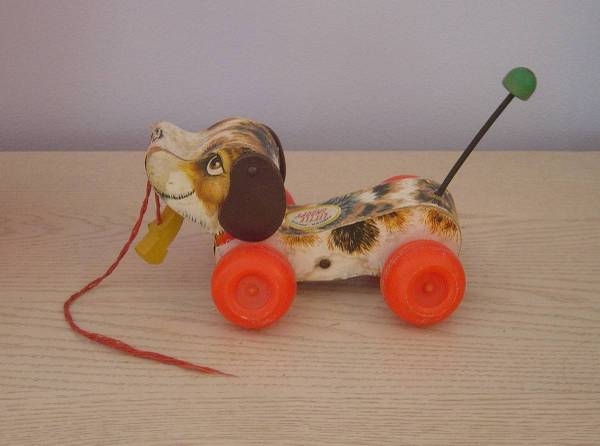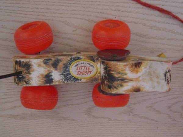 It is available and will only communicate through CL email.. Little Snoopy vintage Fisher Price pull toy. String broke, works well, beagle's "springy" tail moves when walked and makes its noise when wheels turned, carries shoe. 7 1/2" longest. Does show wear. Nice vintage display for under a Christmas tree.