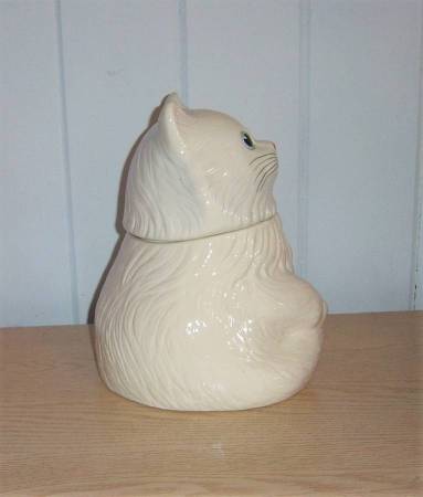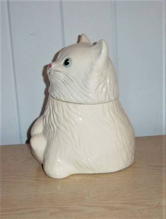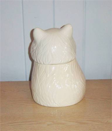 It is available and will only communicate through CL email..This is a vintage ceramic Metlox cookie jar. It is 11" high x " wide. Does have a fine hairline crack in front bottom, and bottom part seems a shade darker in color for some reason, hardly noticeable.