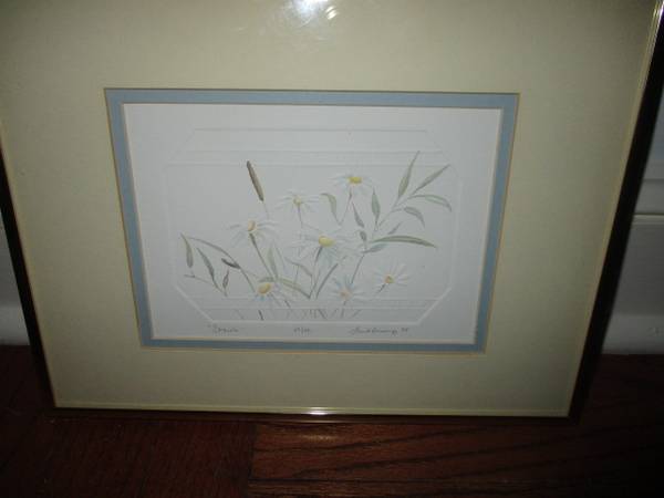 LIMITED EDITION COLLOGRAPH. "SPRING". PURCHASED IN SANTA BARBARA, CA. 'CERTIFICATE OF AUTHENTICITY" ON BACK OF PICTURE. 1985. ARTIST: DEE FUNKHOUSER (CARD ATTACHED) BRASS FRAME. VERY GOOD CONDITION.