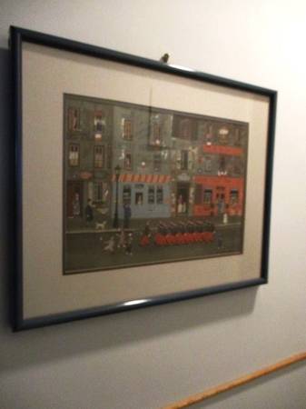 Print by Michel Delacroix. 19" x 2". Stone Blue Frame. Off white mat. Very good condition. Prints are popular. https://www.youtube.com/watch?v=RyZ7zfwSjbw. (Delacroix link) Thanks for looking.