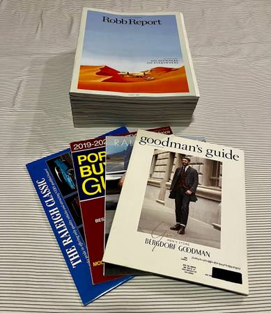 Experience the elegance of Robb Report Magazine's stunning design and content, featuring articles on the latest trends in travel, fashion, and business. With a focus on quality and attention to detail, this set of publications is sure to impress. Don't miss out on the opportunity to add this valuable collection to your library.
