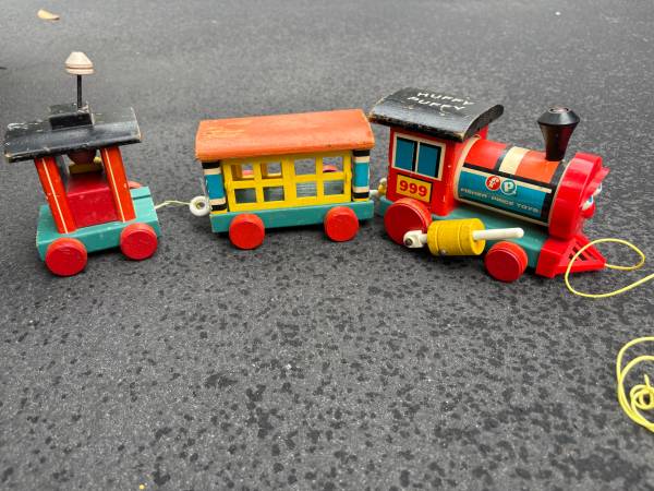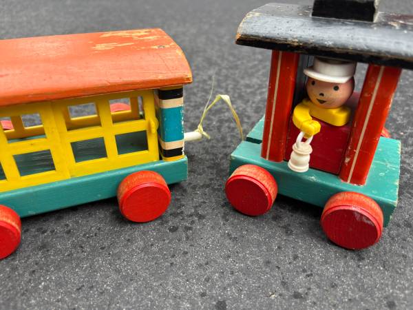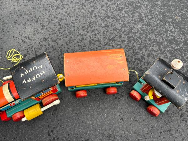 Vintage 1963 Fisher Price Wooden Huffy Puffy Train Engine Pull Toy #999 Wooden Engine Caboose Box Car