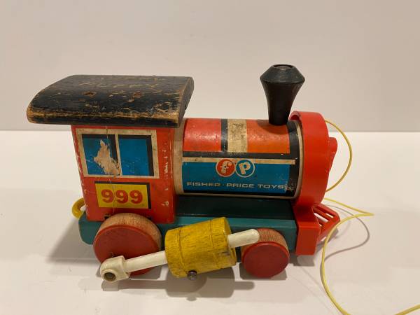 Vintage 1963 Fisher Price Wooden Huffy Puffy Train Engine Pull Toy #999