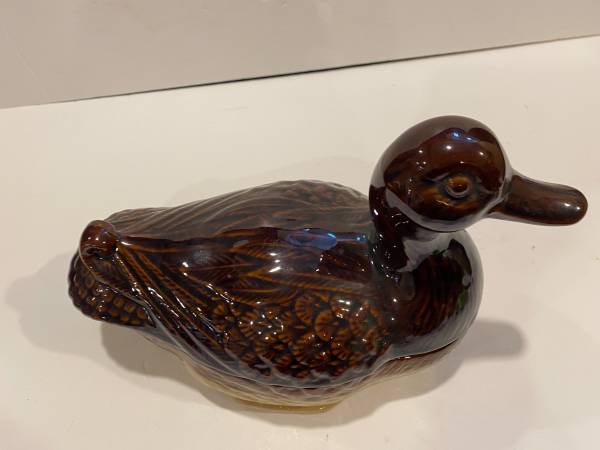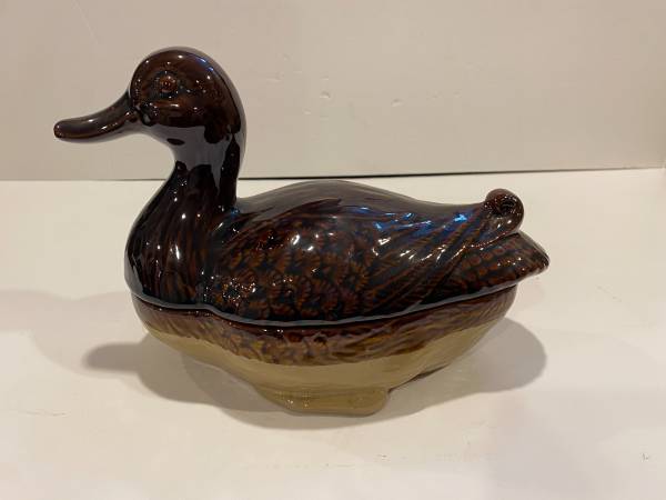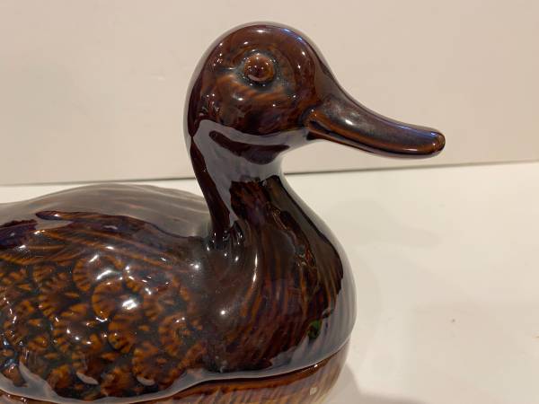 Vintage Brown Ceramic Duck Sculpture and Trinket Dish 1970’s Made in Tawain 9” long, 6.5” high and 4” wide in excellent condition