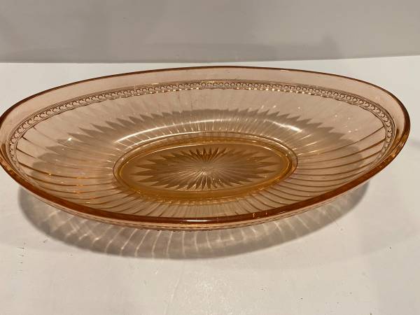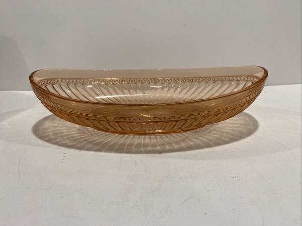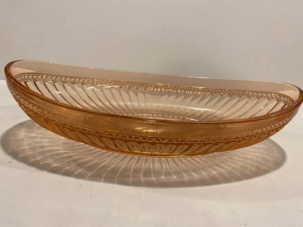 Vintage Early Imperial Pink Glass Oval Dish Bowl 12.5” long by 6” wide by 2.5” high