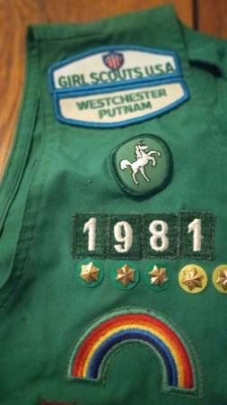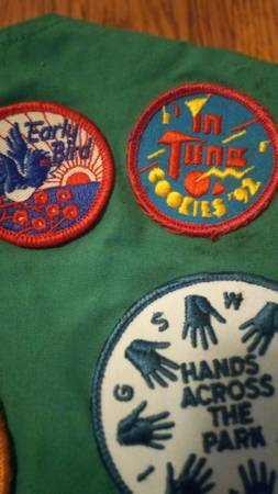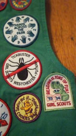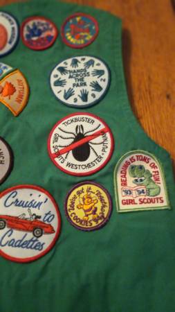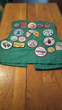 Vintage Girl scout vest with emblems Over 40 emblems. Great for collection.