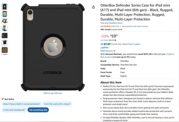 iPad Mini 4 (Model No. A1538) with $60 Value OtterBox Defender Series Case for iPad mini (A17) Multi-Layer Protection