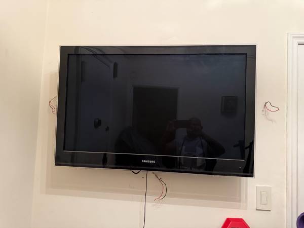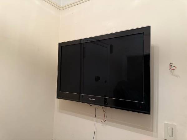 Television is a non smart 40” Samsung, mounted on a fully motorized mount. Never used, but it’s several years old. In great condition, and can be removed from wall with mount attached. Great for...