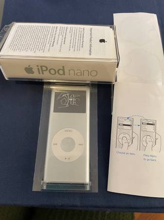 Silver iPod Nano with original packaging and instructions. 2GB 500 songs PC + Mac Case intact