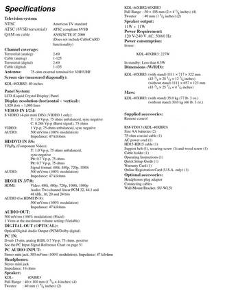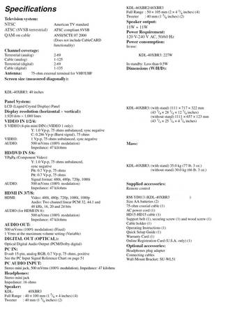 SONY BRAVIA TV / Monitor 40" View (Analog and Digital I/O)...