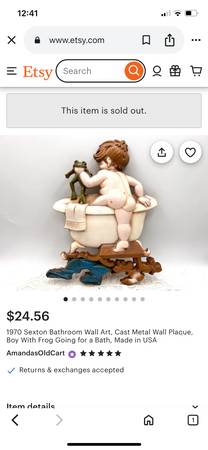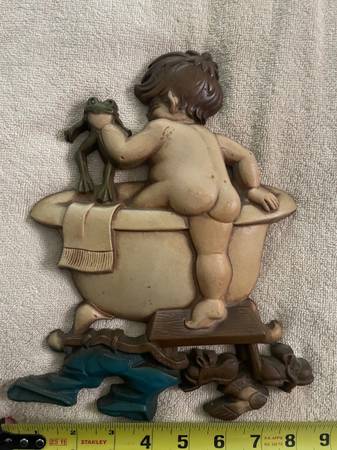1970 Sexton Bathroom Wall Art Cast Metal Wall Plaque Boy With Frog Going for a Bath Made in USA by Sexton In great vintage condition.
