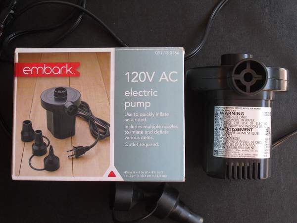 2. I have an electric pump that can be used to inflate or deflate airbeds, rafts, etc... Largest nozzle of the three has been missing since my yard sale. Other than that unit is brand new (never used). Asking $5