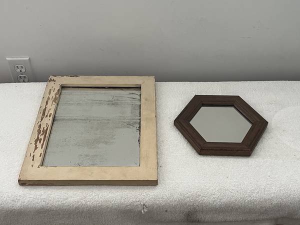 - Two octagon mirrors, overall good condition. Have been in my garage as I had plans to create custom frames to match home decor, but never got around to it (as you can see, one is still wrapped up). Need a good cleaning. They are both 21" in diameter. Happy to unwrap the second one for you to see when you come out. $20/each or $30/pair.