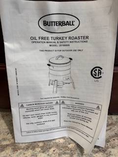 Butterball oil-free fryer and roaster designed for healthy eating, Can cook up to an 18 lb turkey Retails for $130 - selling for $80 Double wall construction with 1650 W electric element Removable...
