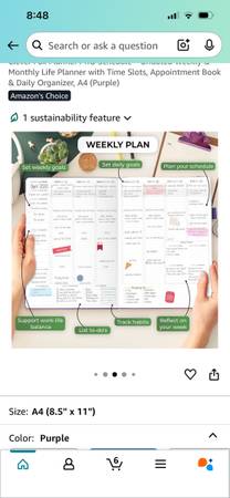 Undated weekly planner with time slots, A4 size, purple. Sent wrong color 25-26 planner and more. It is undated so it can be reused. Excellent/Best planner I’ve had. Relocating. Price negotiable....