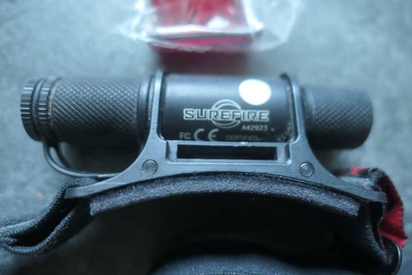 Takes one CR123 lithium battery (not included.) This is a spill light so meant for tasks near you such as setting up a tent at camp. In the military, personnel don't want a bright light that'll give their positions away to the enemy. Surefire makes military-grade, tactical gear and their customer service is very good in honoring lifetime warranties.