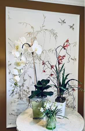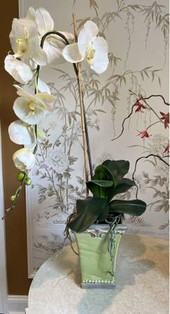 Three Faux Floral Arrangements / Orchid & LV Size tall orchid 35 H Condition good In need of a new + loving home