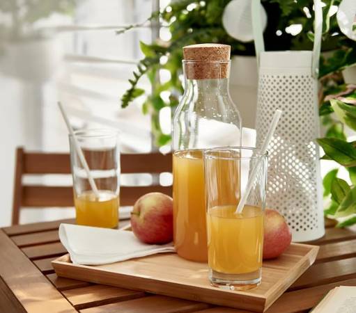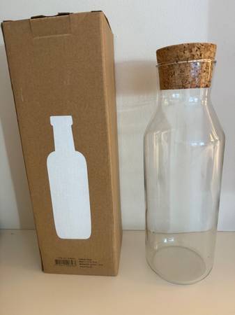 Glass Carafe New with box Cork Top 11 3/4" in height Great Gift Material Heat resistant glass Color Clear Glass Capacity 0.5 Liters Style Minimalist I have several and use for cherry juice, all...