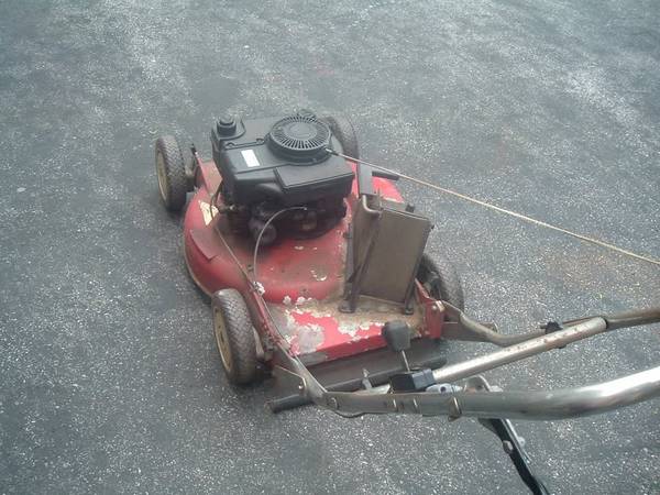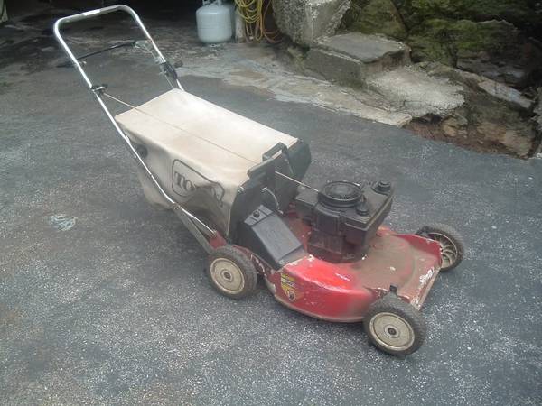 Toro 21-inch gas lawn mower. Rear bagger, aluminum deck, professionally maintained. Very old but starts, runs and cuts like new.