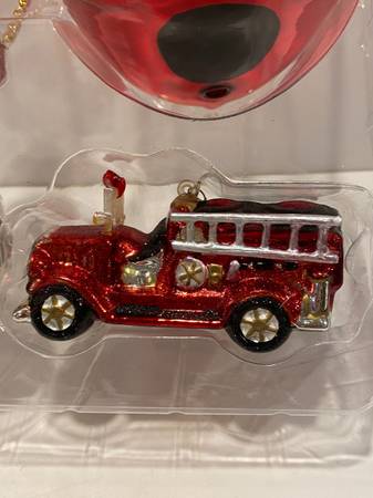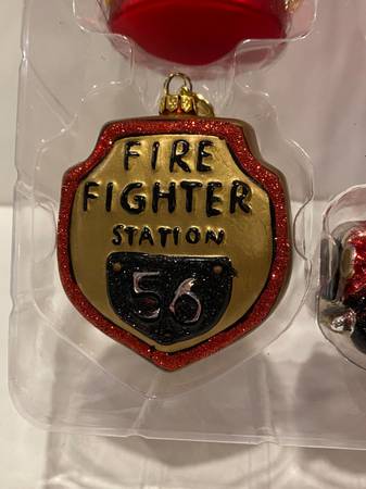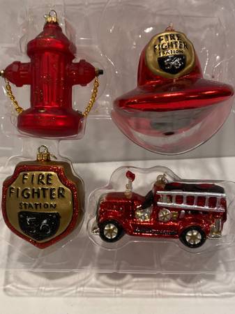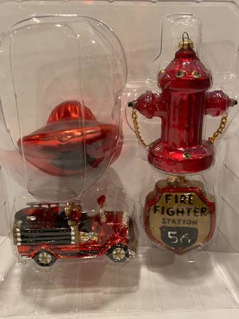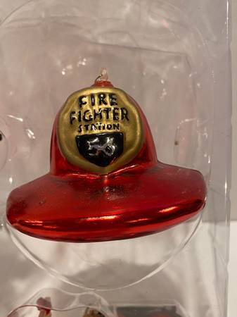 Dept 56 Christmas Tree Blown Glass Fireman Ornaments Hat Truck Emblem Fire Hydrant Firemen