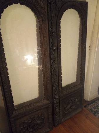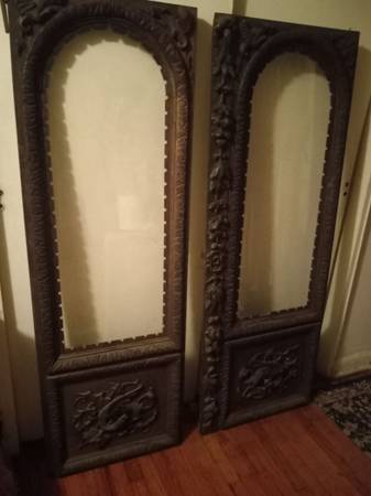 2 doors wood golothlic biblical gargoyles figures. Lot of detail all hand carved craftsmanship 64 High 24 wide can pickup can be seen in yonkers. Asking 650 price negotiable