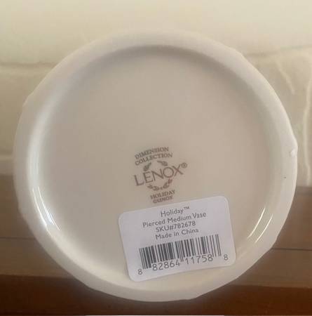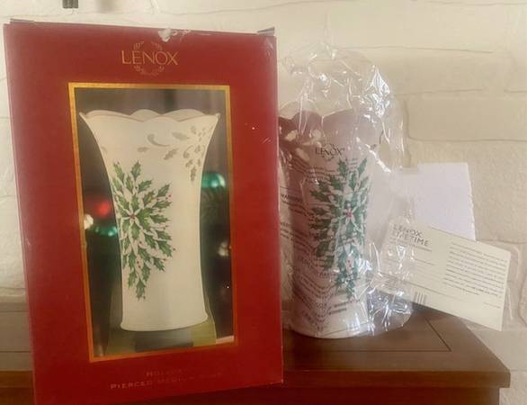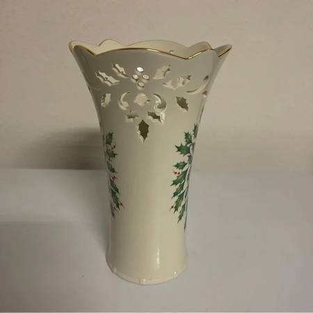 Lenox Holiday Pierced Medium Vase (Dimension Collection) in box with original wrapping, though a bit worn. 9" tall. New never used.